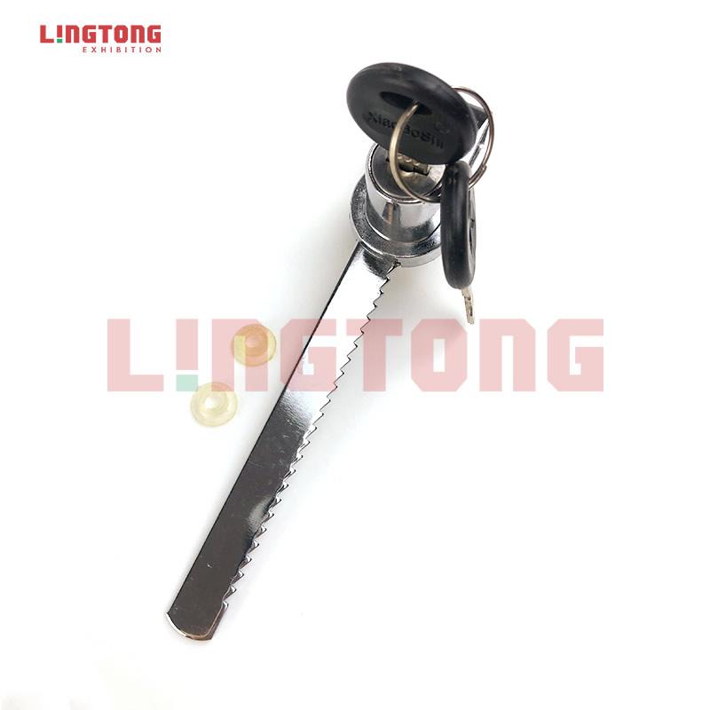 Add to CartIt is a Lever Bolt Lock in showcase system. It is used for sliding glass doors whose thickness is 5mm to 8mm. It can be used in the structure of a showcase which has a glass door. The glass door dose not need to be milled a hole for assembling locks. The locks can be equipped with a universal key or individual keys. These can be customized to suit the customer's requirements. It weighs 0.060kg per each. It is made of steel. The products of LingTong are green and environmentally friendly. If there are some relative needs, LingTong will provide the best service for you in exhibition construction.