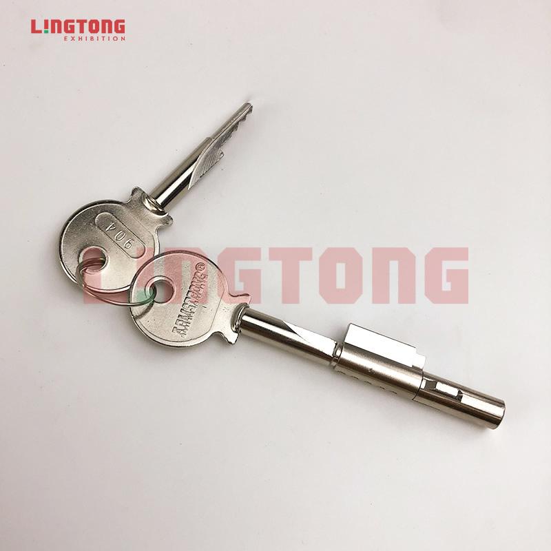 Add to CartIt is a Glass Door Lock in showcase system. It is used for sliding glass doors. It can be used in the structure of a showcase which has a glass door. The glass door needs to be milled a hole for assembling locks. The locks can be equipped with a universal key or individual keys. These can be customized to suit the customer's requirements. It weighs 0.046kg per each. It is made of steel. The products of LingTong are green and environmentally friendly. If there are some relative needs, LingTong will provide the best service for you in exhibition construction.