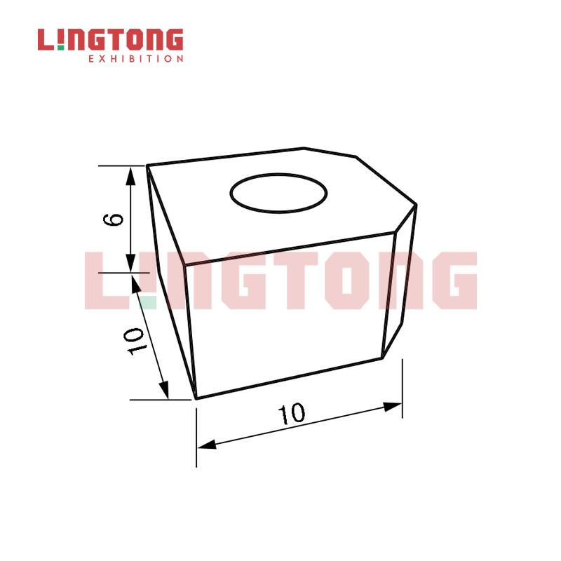 0It is a Latch Plate for Shelf in showcase system. It is fixed into the extrusions with a screw. Put then on the extrusions could support the shelf. It could support the panel stably.