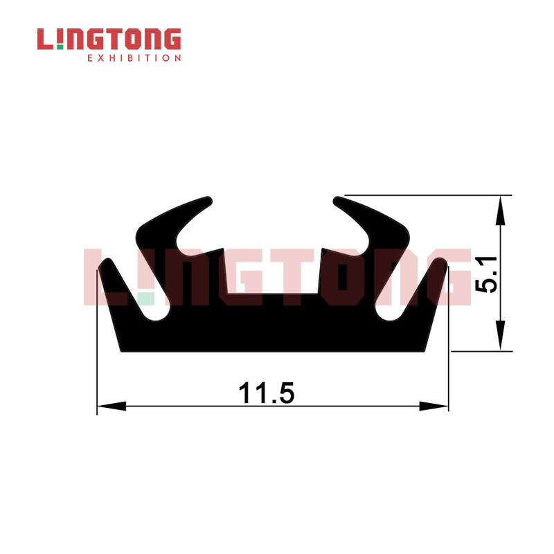 0It is a fixture in showcase system. It is used to glue to the panels and then the panels could insert into the grooves of extrusions.The panel can be more tightly tucked into the extrusions. . This fixture greatly enhances the friction between the panel and the groove. Its size is 11.5*5.1mm. It weighs 0.040kg per meter. Its max length is 5m. If you have any other requirements, LingTong will meet your needs. It is made of plastic. The products of LingTong are green and environmentally friendly. If there are some relative needs, LingTong will provide the best service for you in exhibition construction.