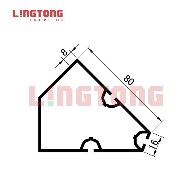 Add to CartThis 45 degrees corner connecting extrusion is designed to connect 80mm square extrusions, it can be used both for 45 degrees connection and for 135 degrees connection, its material is aluminum alloy and this profile has three system grooves, the width of the groove is 4.3mm, thus it can be compatible with system profiles. When this post is used with 80mm square upright, it can realize some special-shaped booths, and it also applied to some entrances of the pavilion and galleries. By adopting the German standard, the quality of Lingtong’s products is well accepted by European and American customers.
