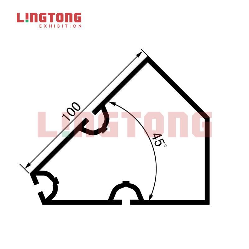 Add to CartThis 45 degrees corner connecting extrusion is suitable for 100mm square extrusion, It has two applications, one is that it can be used for 45 degrees connection, the other is for 135 degrees connection. This aluminum profile has 3 system grooves, and the groove width is 4.3mm. By using this aluminum connecting post, many special-shaped booths can be realized easily. Lingtong’s products are all reusable and non-polluting, to realize our vision: Bring Environmental-friendly Exhibition System Into Every Expo Space. The quality of all LT materials comply with German standards, it is well accepted by European and USA customers.